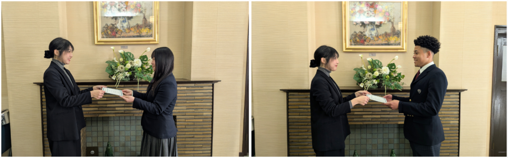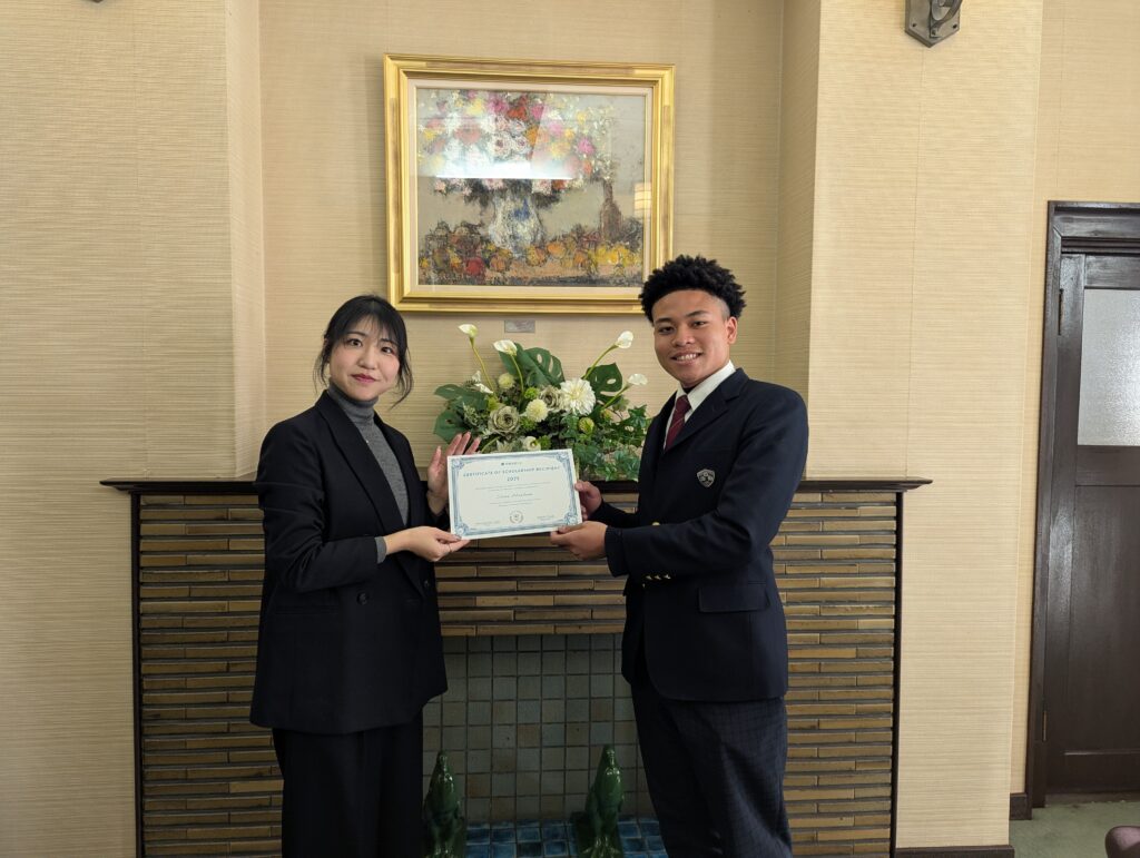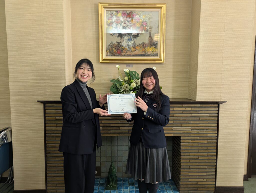 受賞式は、四條畷学園高等学校にて実施され、受賞生徒に対し留学奨学金の授与が行われました。