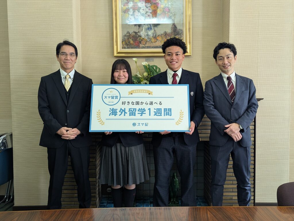 四條畷学園高等学校とスマ留が共創型プロジェクトとして「留学奨学金」受賞式を実施— 在校生2名に海外留学を提供 —