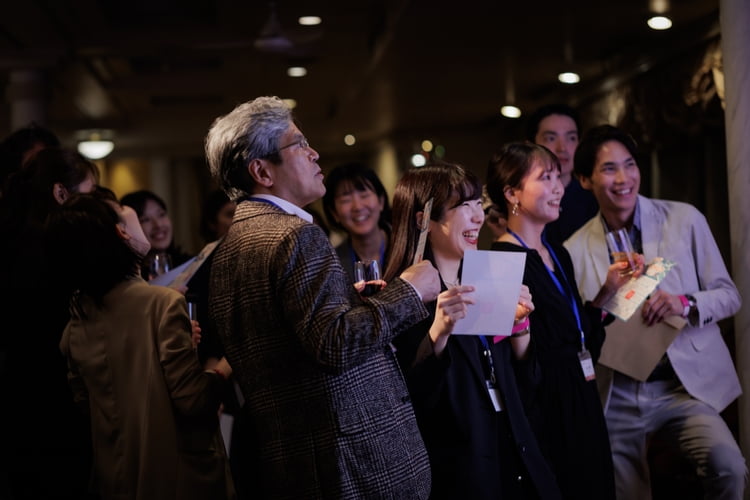業績の振り返り、今後のビジョンや方針の共有、活躍した社員の表彰など盛大に行います。社員間の交流を目的としたコンテンツも! -